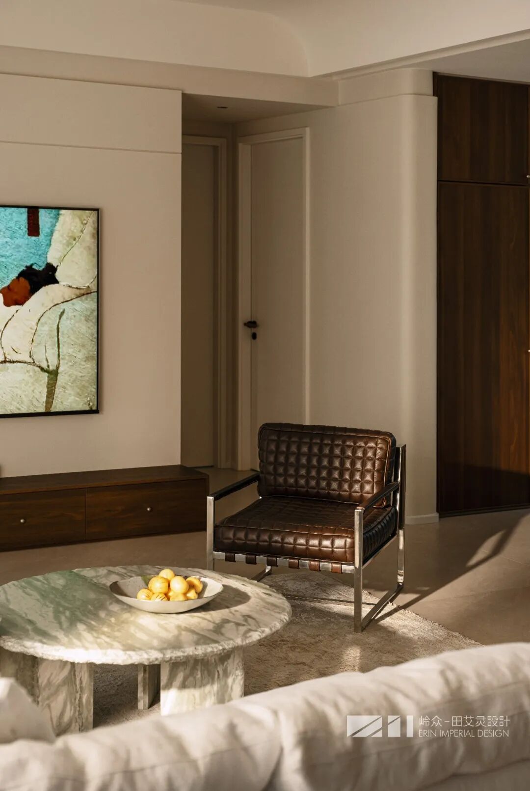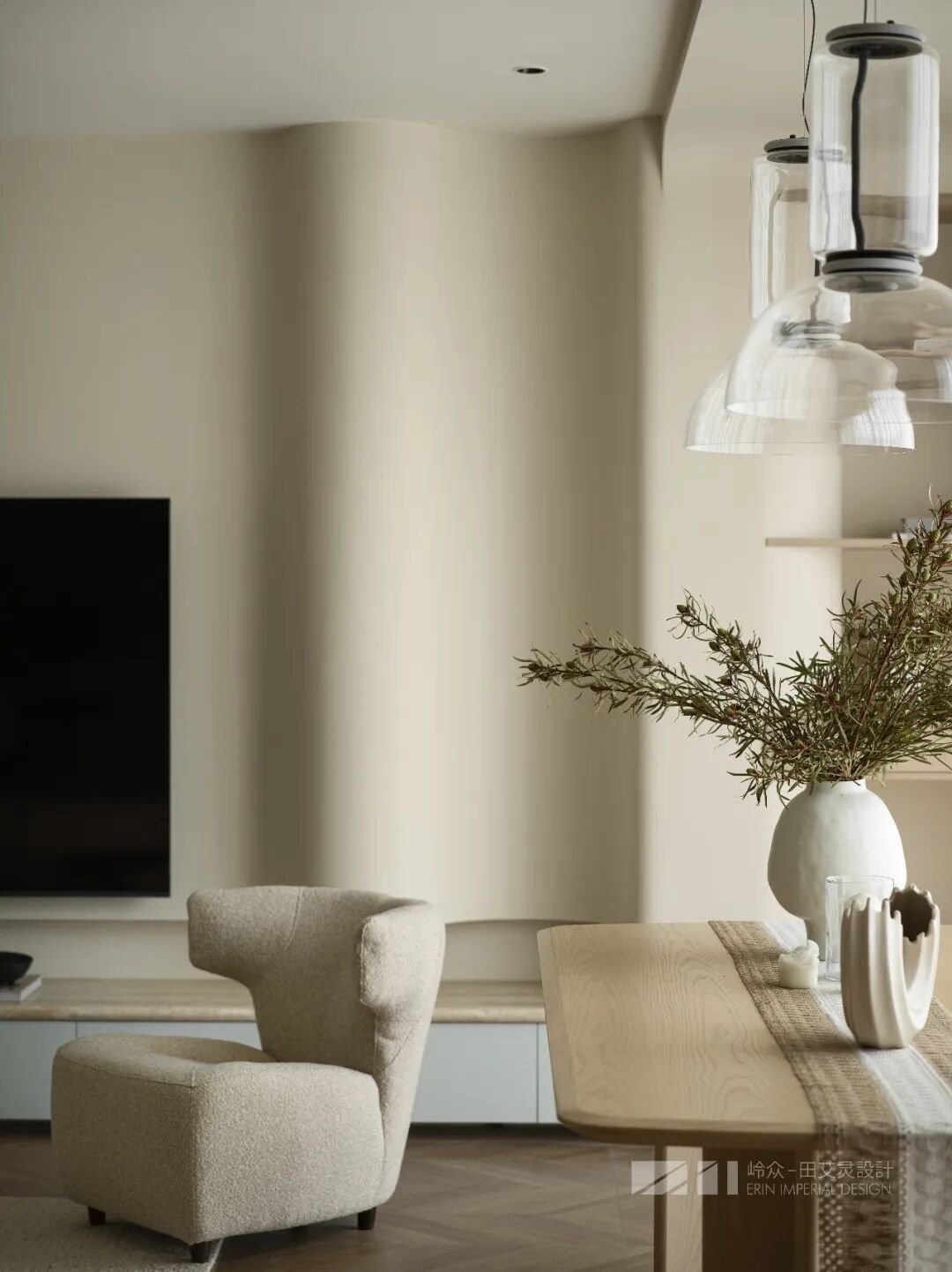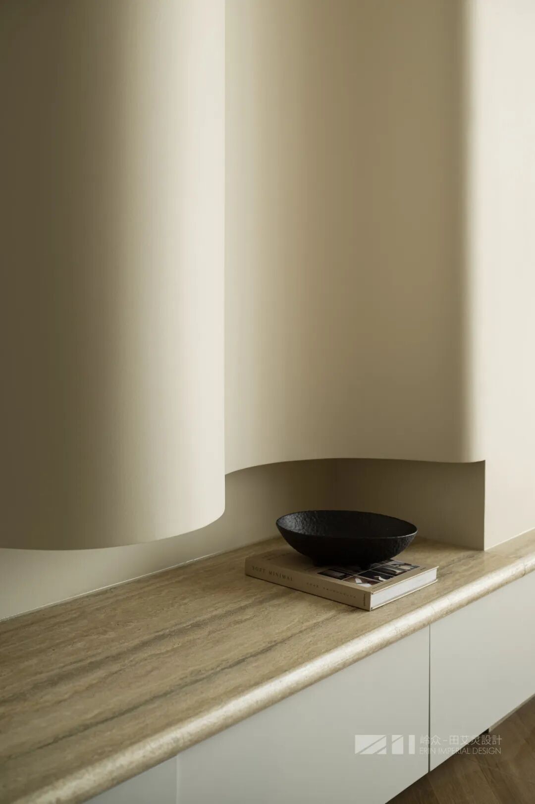 天然的木、石、棉麻是可呼吸的空间,用大地色系铺陈整体空间平静,可扩大视野感。适当的流畅弧线是柔化空间的舞蹈,用细微递进的质感与色度微差变化、偶尔重调勾线立骨骼,构建出大调子平衡和谐,小细节入眼入心、触摸有肌理有温度、呈现出一室的细腻。