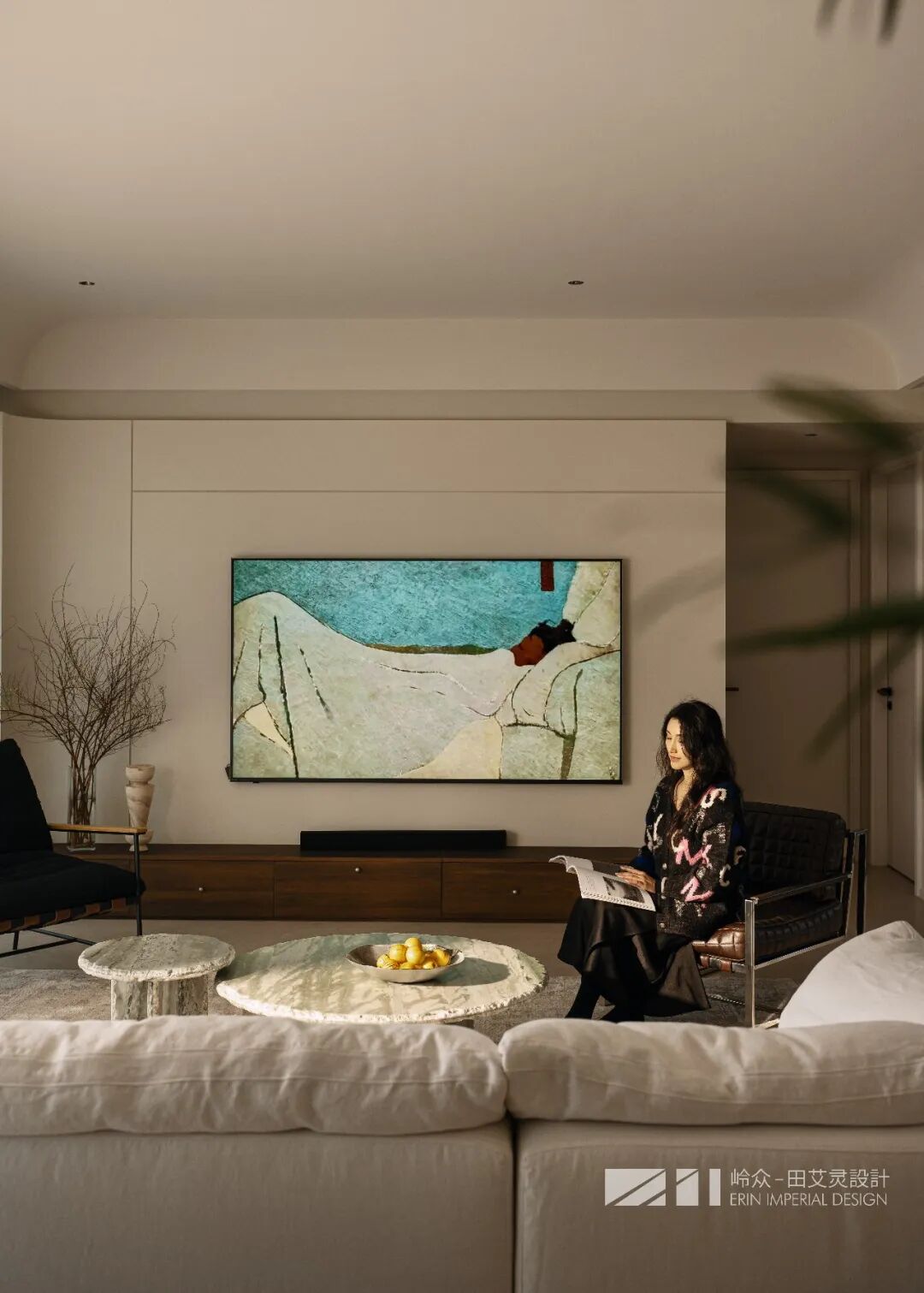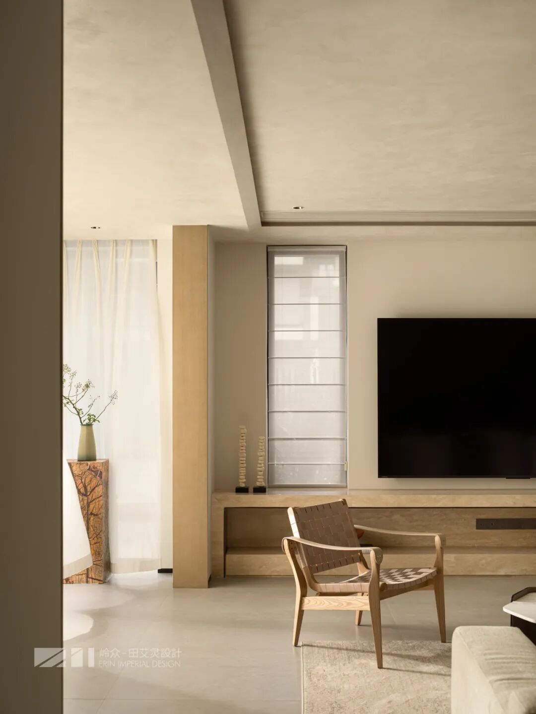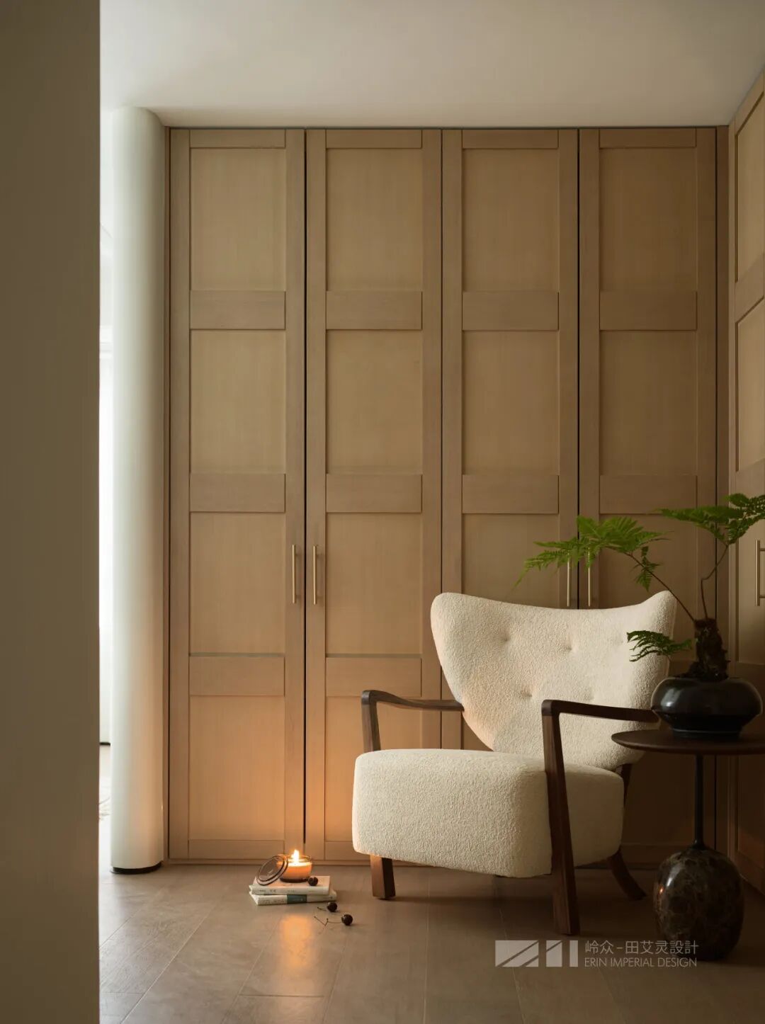 天然的木、石、棉麻是可呼吸的空间,用大地色系铺陈整体空间平静,可扩大视野感。适当的流畅弧线是柔化空间的舞蹈,用细微递进的质感与色度微差变化、偶尔重调勾线立骨骼,构建出大调子平衡和谐,小细节入眼入心、触摸有肌理有温度、呈现出一室的细腻。