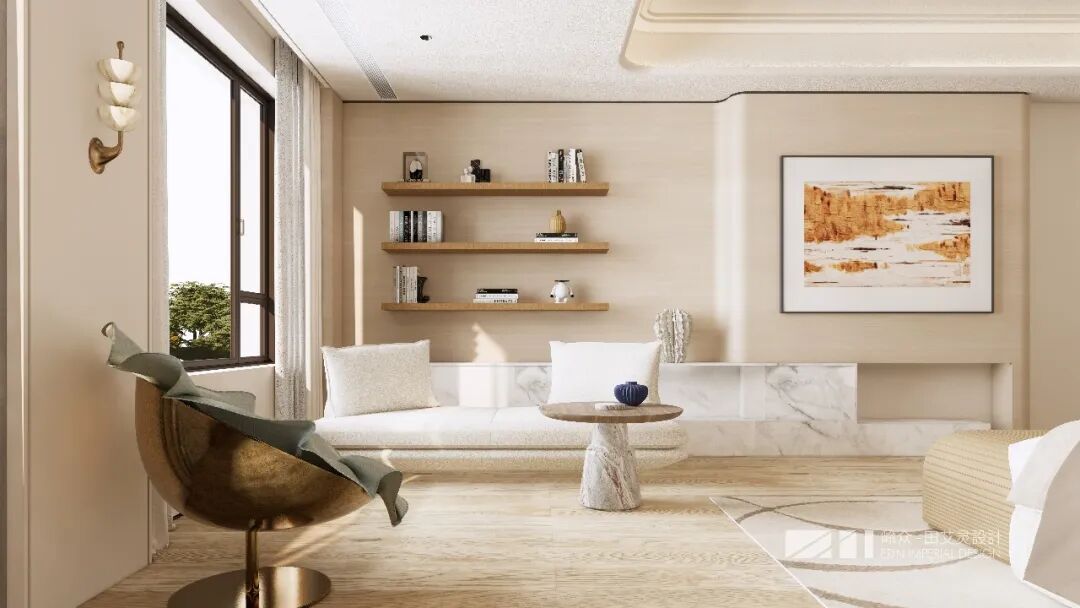 当空间的清浅色调,形成内外空间的光与艺术之美,逐渐晕染出温润滤镜,开放交互之间,塑造空间多元互动,于轮转的光影和质朴的细节中沉淀着生活的诗意。