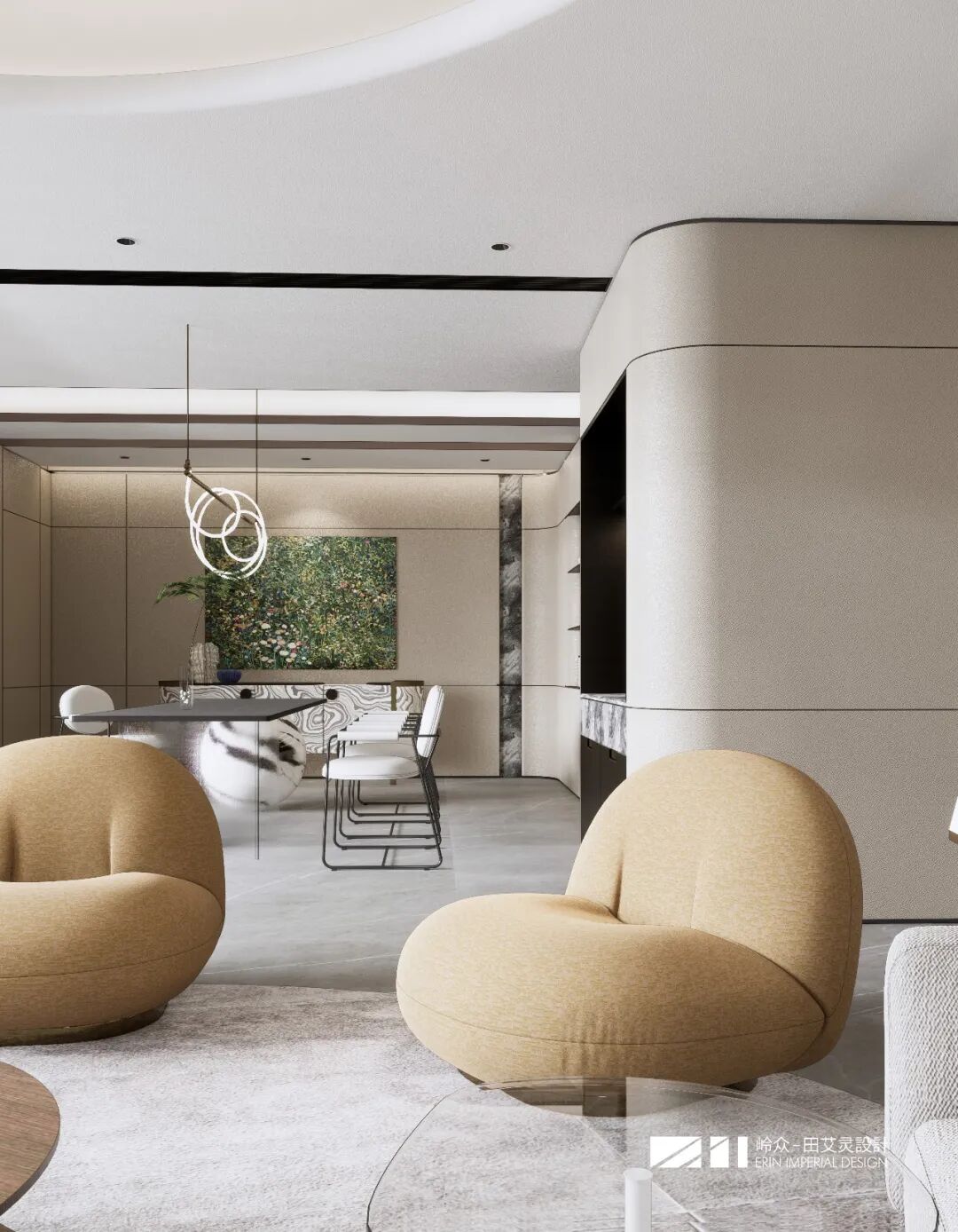 The design of private house is the sublimation of life experience and the concrete expression of inner aesthetic appeal.Erin Tian , a designer has 26 years of deep-rooted experience in the industry and a solid professional background, and has formed a mature and unique spatial planning system for large houses. Starting from the internal and external environment of the house and the personality genes of the occupants, we will accurately control the line and structure of the space, and strive to create an aesthetic space that fully fits their lifestyle and has lasting vitality for each occupant.